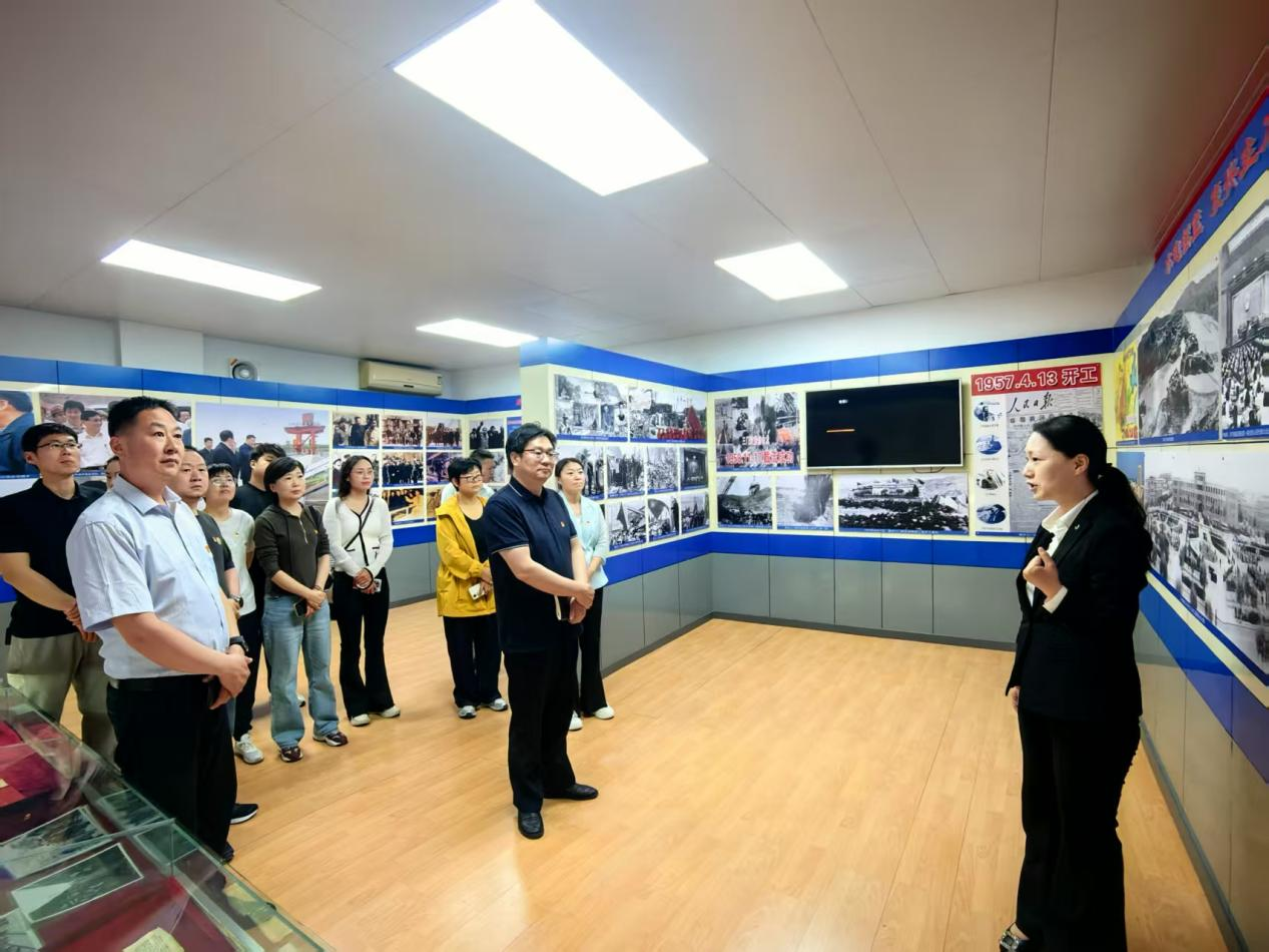 活动中,党员们首先走进中国水电十一局党史馆,通过珍贵的历史影像和实物展陈,重温黄河三门峡水利枢纽工程的建设历程。1955年,新中国首座大型水利枢纽工程在此拉开序幕,周恩来总理亲自部署,数万建设者从八方汇聚,用热血与汗水书写奇迹;1958年,十一局职工昼夜鏖战完成黄河首次截流;1959年寒冬,1500余名党员群众肩挑手扛、破冰清淤,用血肉之躯打通工程“生命线”。党员代表驻足聆听讲解,深刻体悟到“艰苦奋斗、迎难而上”的劳模精神正是工程建设者克难制胜的“精神密码”。