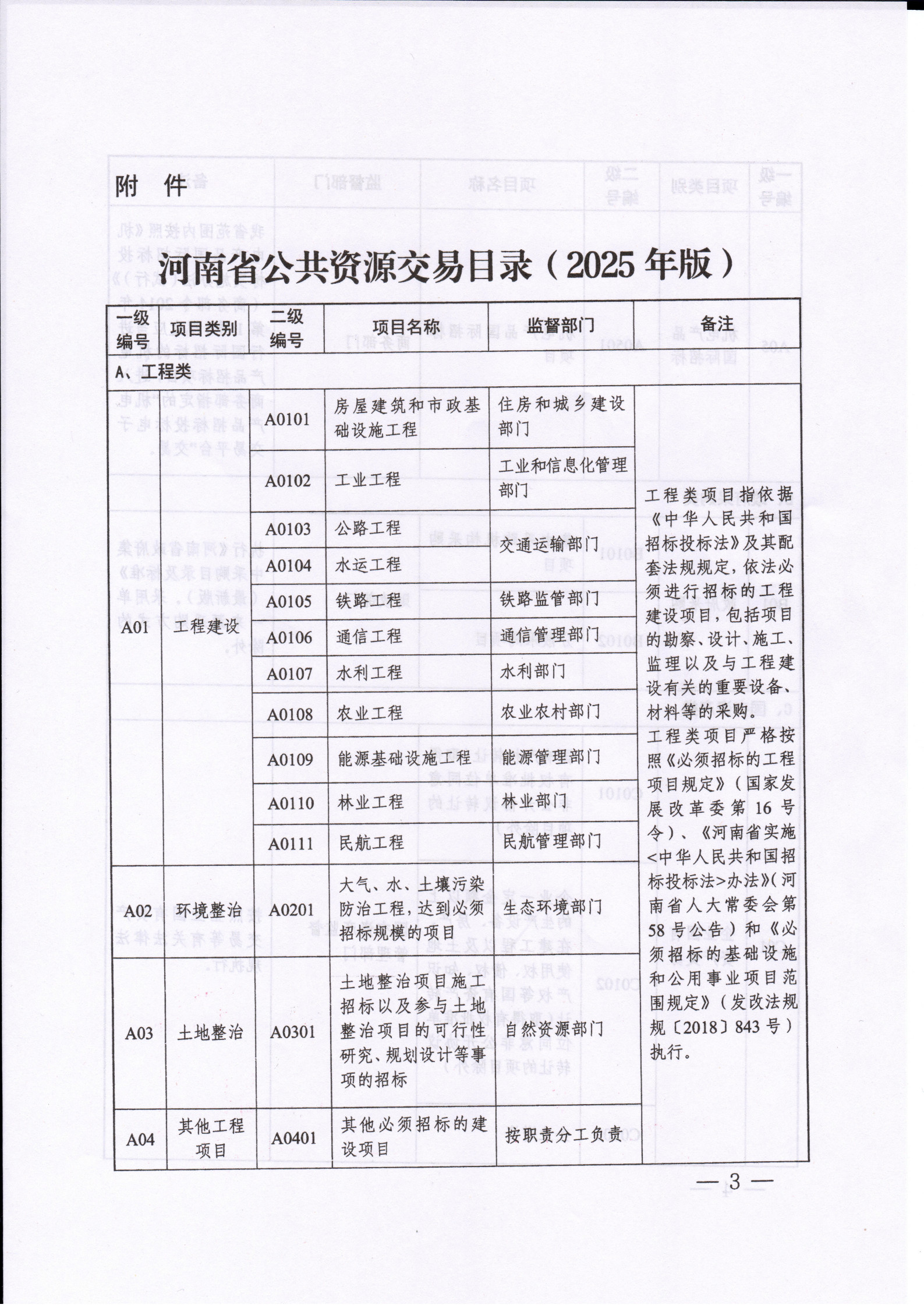《河南省公共资源交易目录 (2025年版)》