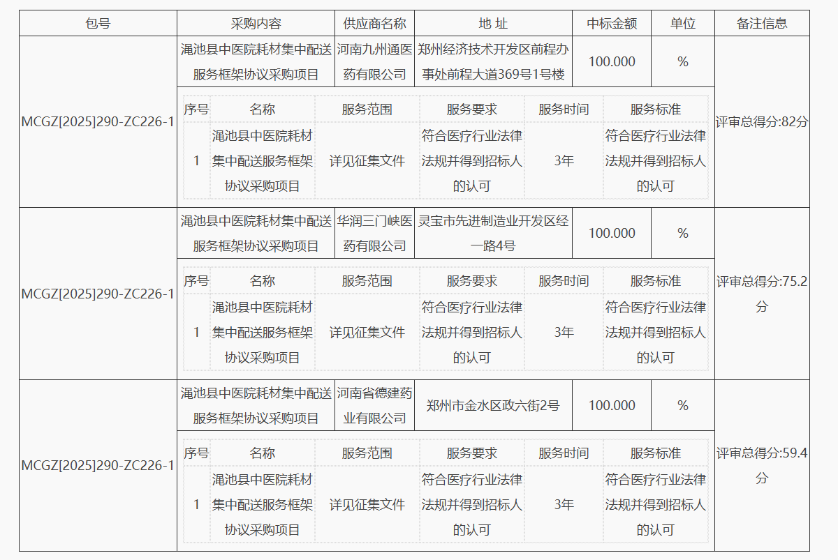 2、项目名称:渑池县中医院耗材集中配送服务框架协议采购项目