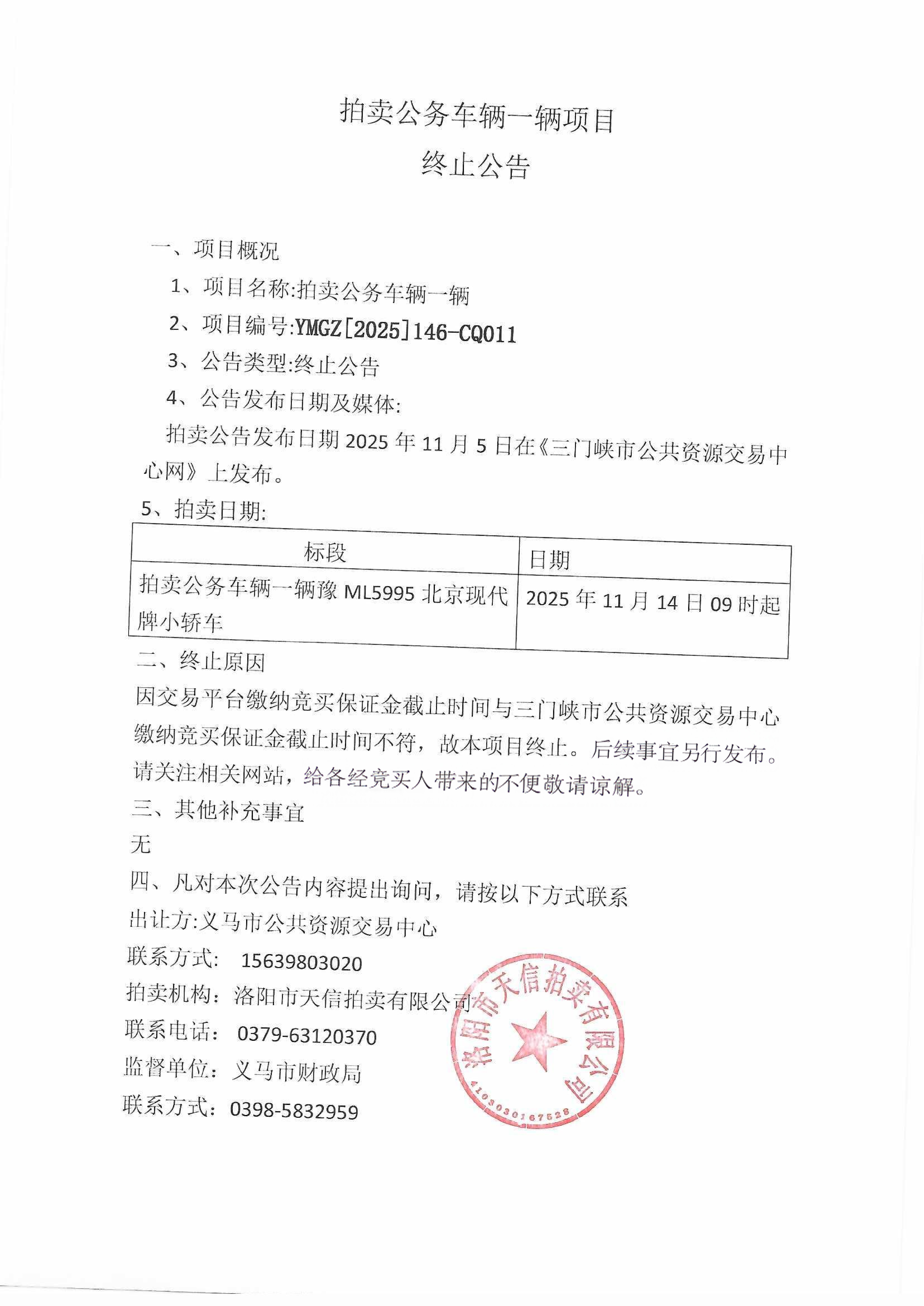 拍卖公务车辆一辆豫ML5995北京现代牌小轿车 |